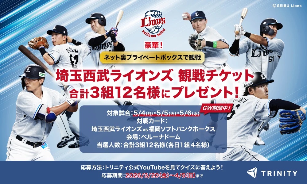 合計12名様に豪華観戦チケットをプレゼント!YouTube視聴&クイズ回答でGWのベルーナドームへ