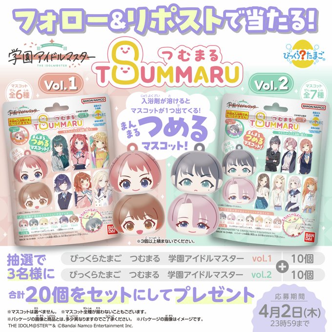 賞品:びっくらたまご つむまる 学園アイドルマスター vol.1&vol.2(3名様)