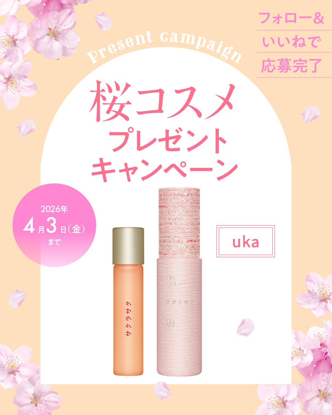 賞品:ウカ ネイルオイル サクラサク(3名様)