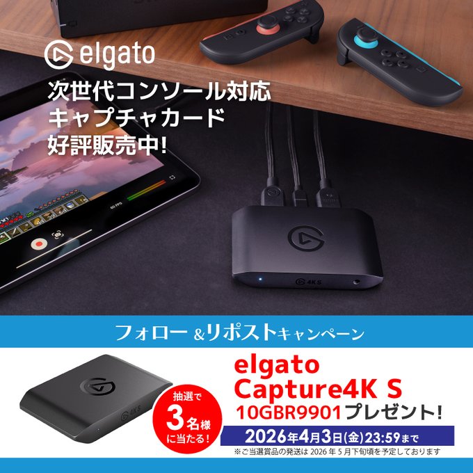 賞品:elgato Capture4K S(3名様)