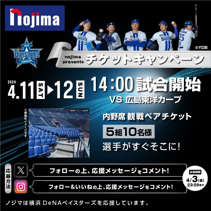 【X・Instagram懸賞】横浜DeNAベイスターズ 応援チケットを5組10名様にプレゼント