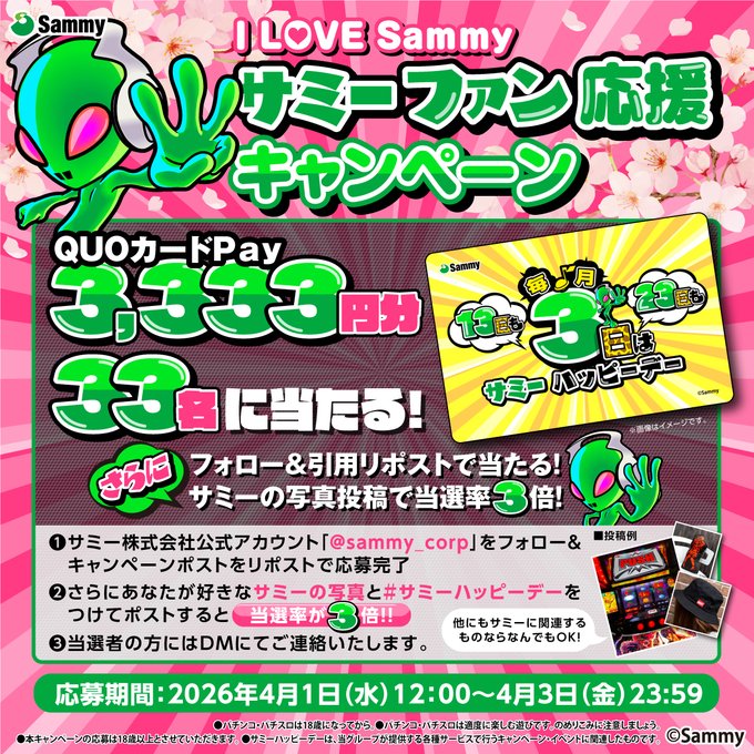 サミー株式会社‐今月3日は #サミーハッピーデー キャンペーン
