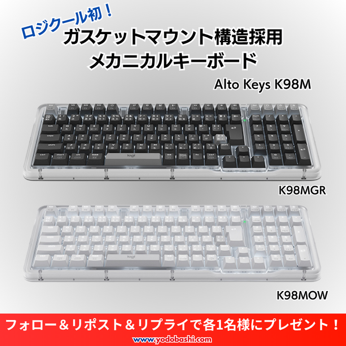 【X懸賞】Alto Keys「K98MGR」「K98MOW」を合計2名様にプレゼント 2026.04.02ヨドバシ@ガジェット機器専門‐プレゼントキャンペーン 賞品:Alto Keys「K98MGR」「K98MOW」(合計2名様) 締切:2026年4月4日(土)👉フォロー&リポスト👉希望のカラーを✍️※詳細はキャンペーンページにてご確認ください。応募はこちらから