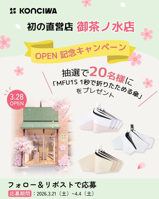 KONCIWA 初の直営店 御茶ノ水店 OPEN記念キャンペーン
