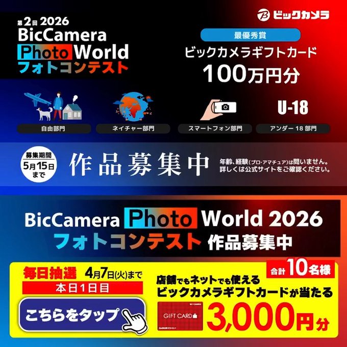 ビックカメラ公式Xアカウントをフォロー&キャンペーン対象ポストをリポストしてご応募ください。