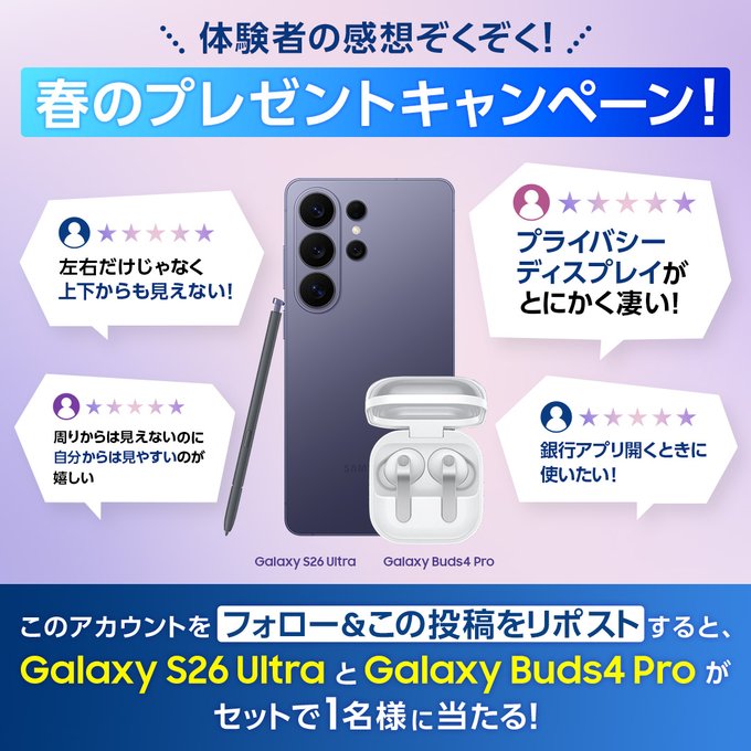 Samsung Japan‐Galaxy S26 Ultra と Galaxy Buds4 Pro が当たるユーザーボイスキャンペーン
