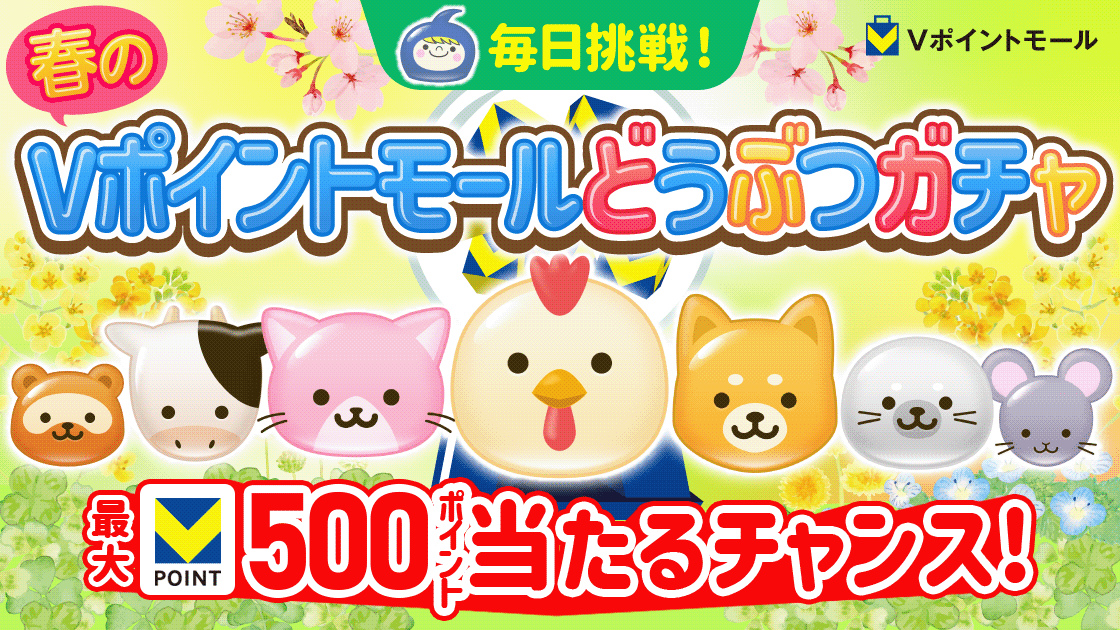 毎日挑戦!春のVポイントモールどうぶつガチャ