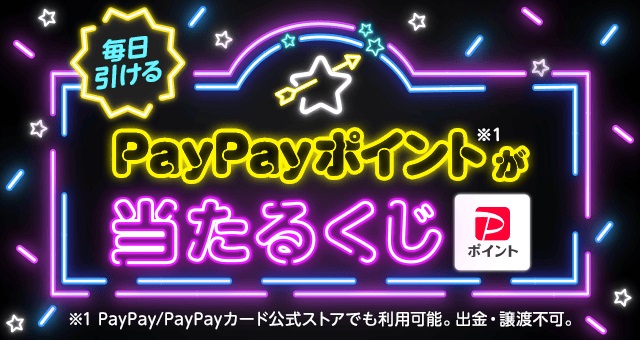 毎日1回くじを引いて、PayPayポイント最大10,000円相当や、そのほかお得な特典が当たるくじです。