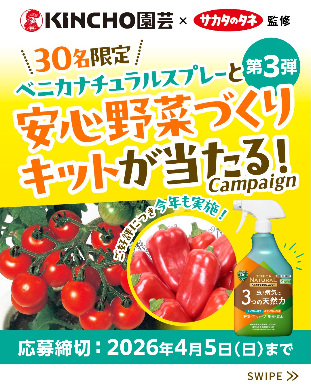 KINCHO園芸‐ベニカナチュラルスプレーと安心野菜づくりキットが当たるキャンペーン第3弾