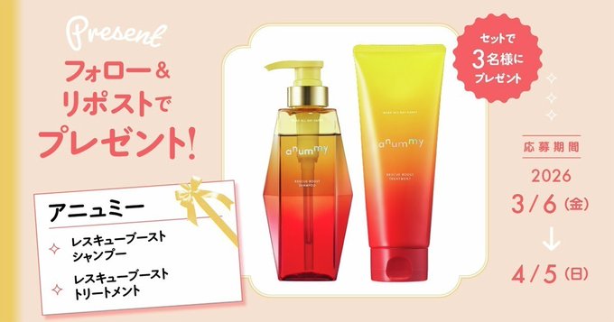 賞品:アニュミーのシャンプー&トリートメント(3名様)