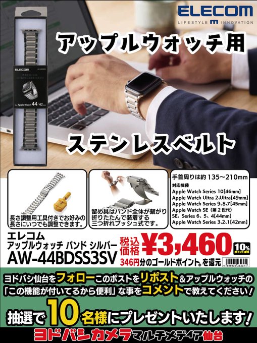 賞品:エレコムのアップルウォッチバンド シルバー(10名様)