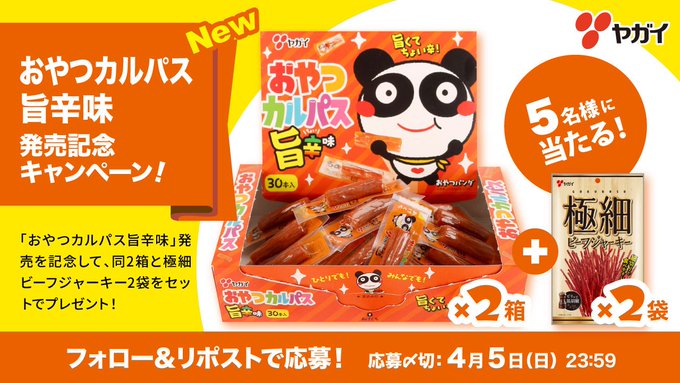 賞品:おやつカルパス旨辛味と極細ビーフジャーキーのセット(5名様)