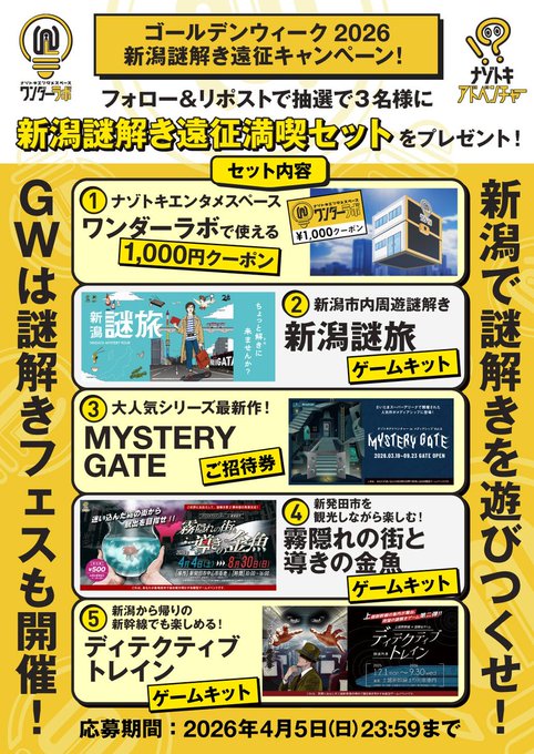 賞品:新潟謎解き遠征満喫セット(3名様)