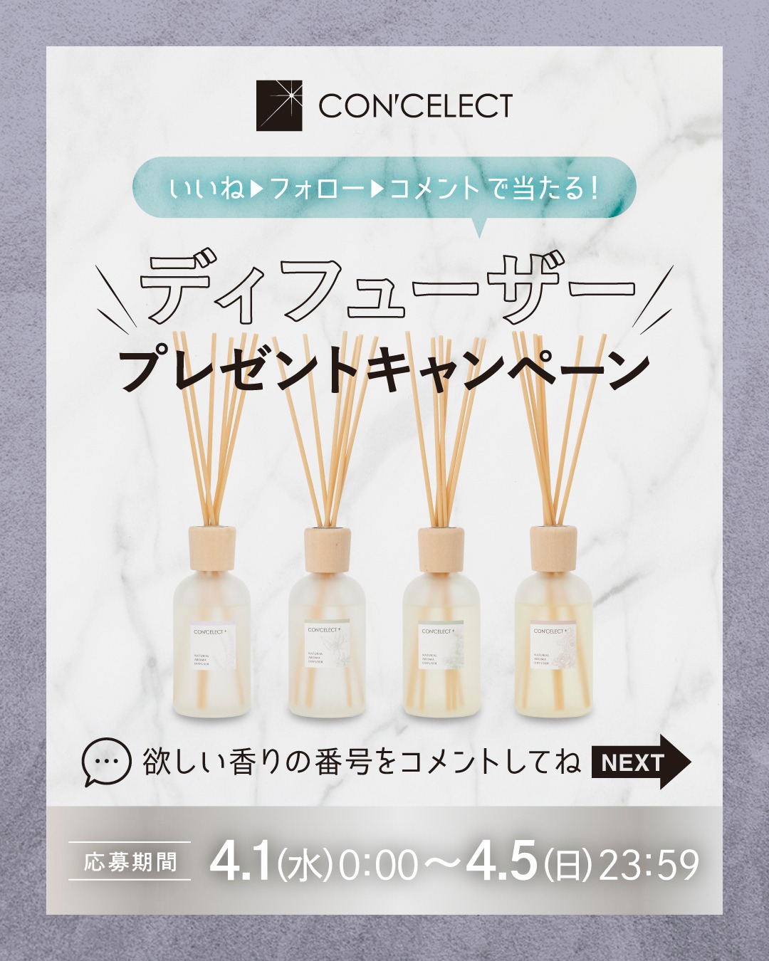 賞品:CON’CELECTのフレグランスディフューザー(8名様)