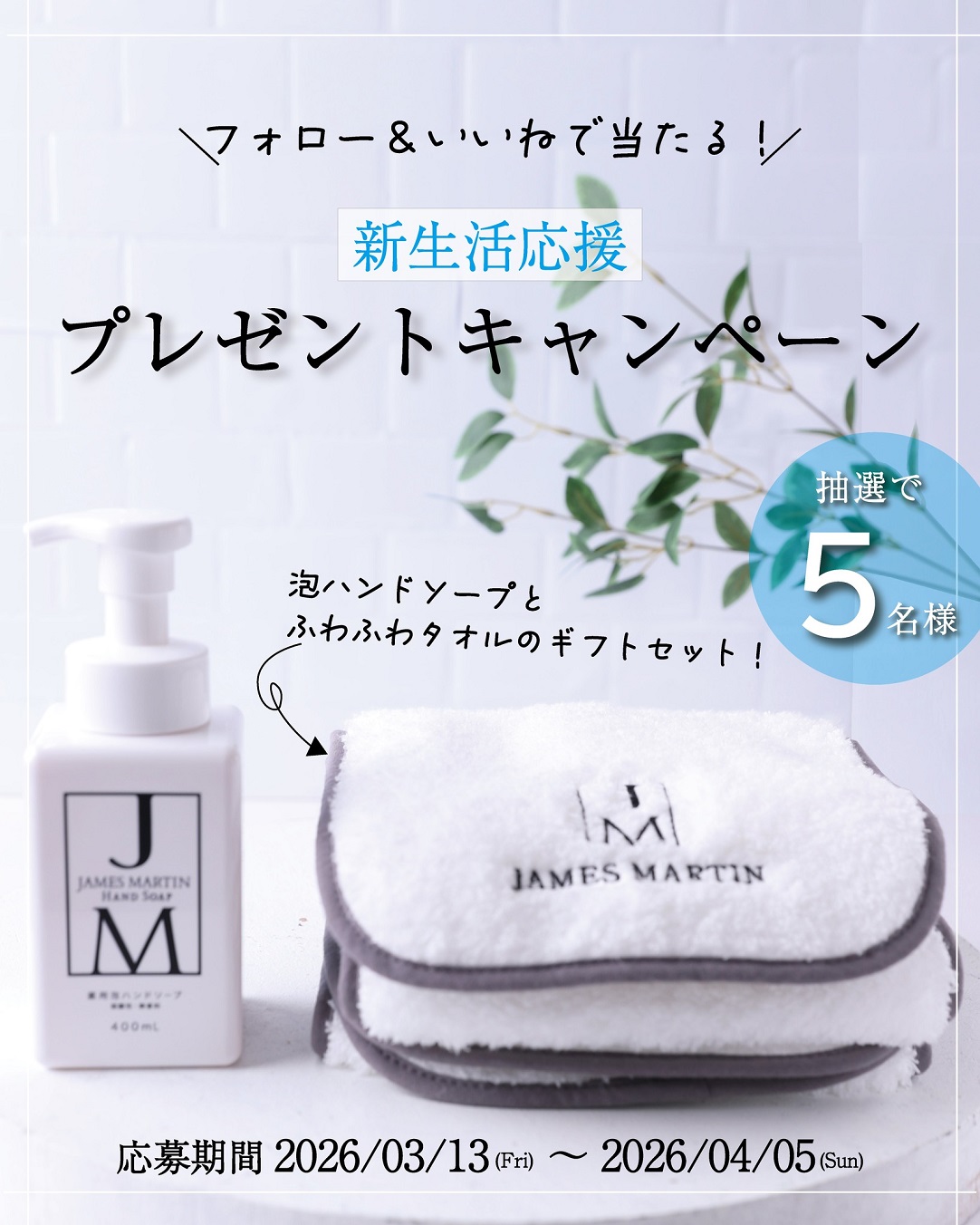 賞品:ジェームズマーティン ハンドソープ&タオルギフトセット(5名様)