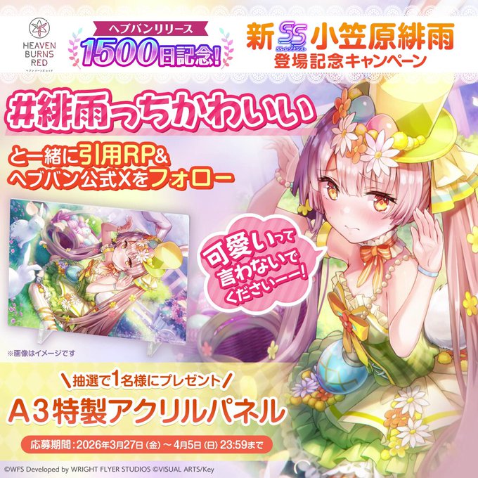 【X懸賞】特製アクリルパネルを1名様にプレゼント 2026.04.03ヘブンバーンズレッド‐プレゼントキャンペーン 賞品:特製アクリルパネル(1名様) 締切:2026年4月5日(日)投稿を引用RP & フォローで応募完了!※詳細はキャンペーンページにてご確認ください。応募はこちらから