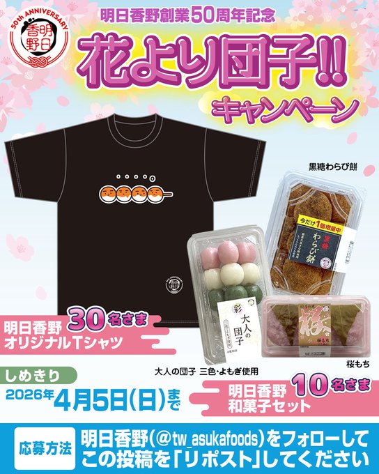 【X・Instagram懸賞】明日香野オリジナルTシャツ、明日香野和菓子詰め合わせを合計40名様にプレゼント