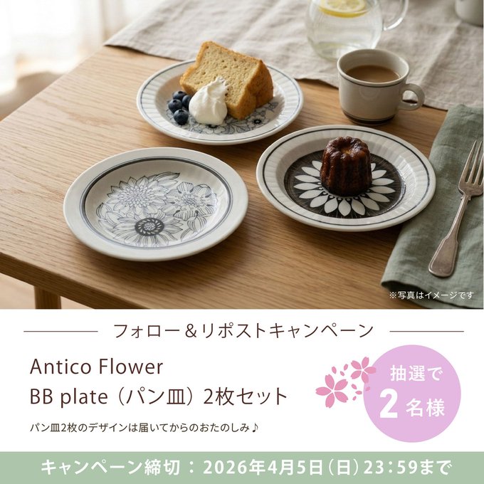 【X懸賞】アンティコフラワー BBプレート(パン皿)2枚セットを2名様にプレゼント