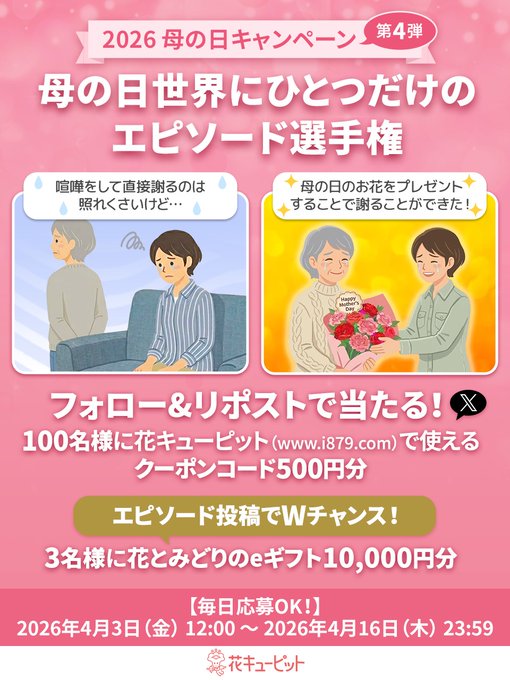 花キューピットの母の日キャンペーン第4弾~母の日世界にひとつだけのエピソード選手権~