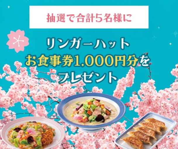 【毎日・X懸賞】リンガーハットグループ共通お食事券1,000円分が5名様にその場で当たる! 2026.04.04リンガーハット‐新生活応援キャンペーン 賞品:お食事券1,000円分(5名様) 締切:2026年4月7日(火)リンガーハット公式Xアカウントをフォロー&キャンペーン対象ポストをリポストしてご応募ください。※詳細はキャンペーンページにてご確認ください。応募はこちらから