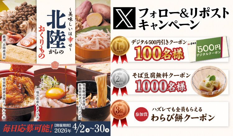 家族亭公式Xアカウントをフォロー&キャンペーン対象ポストをリポストして、記載されているURLからご応募ください。