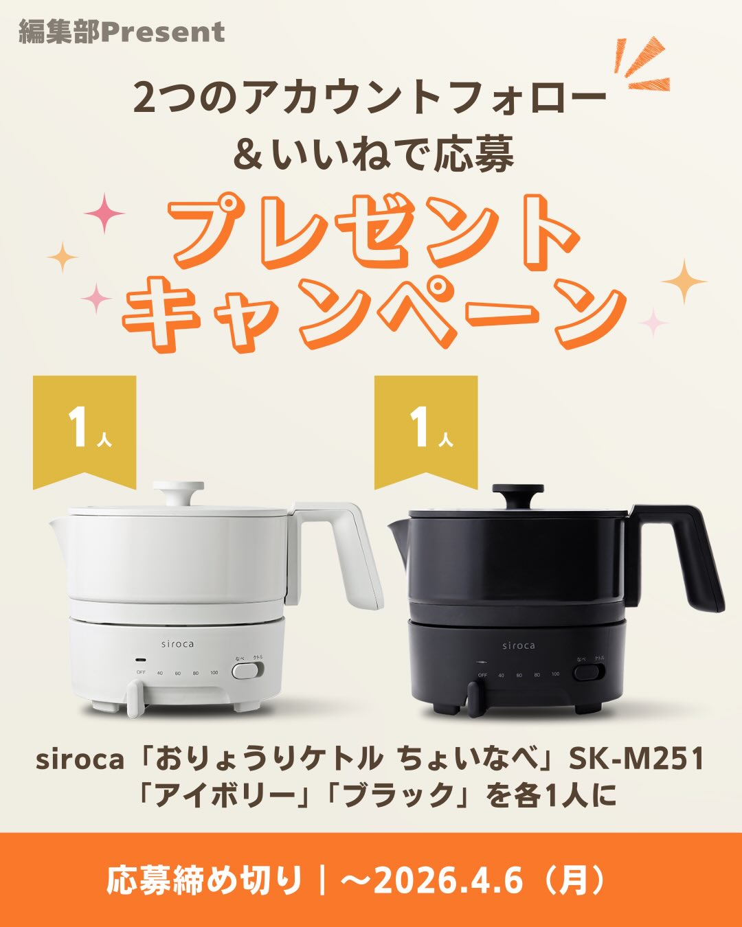 賞品:シロカ おりょうりケトル ちょいなべ SK-M251(2名様)