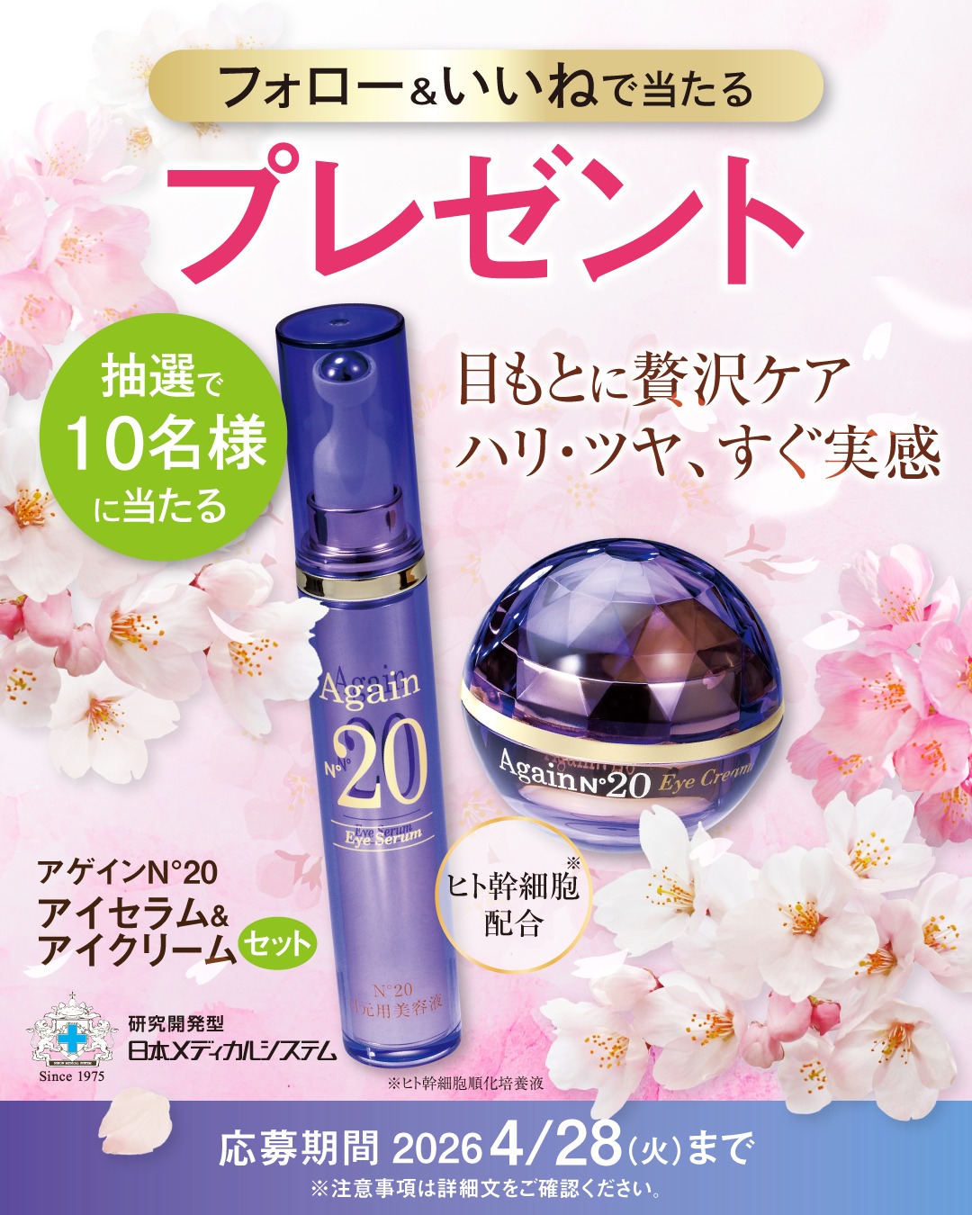 賞品:アゲインナンバー20 アイセラム & アイクリーム(10名様)