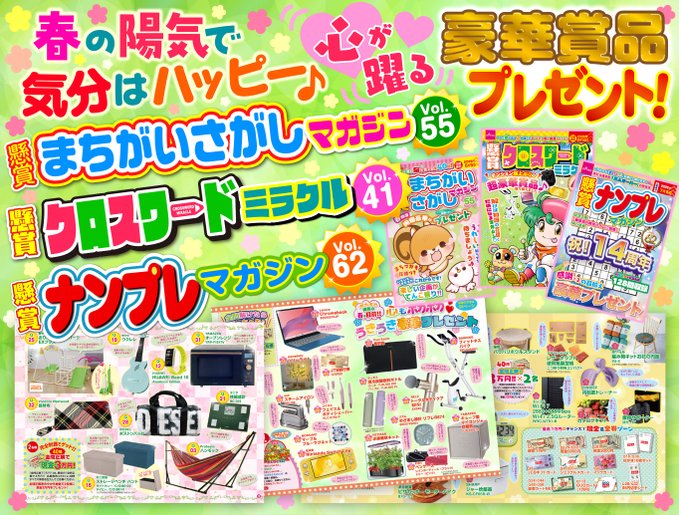 賞品:『まちマガ55』『クロミラ41』『ナンマガ62』の3誌とQUOカード3,000円分(10名様)