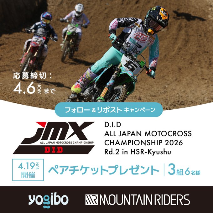 賞品:4/19(日)開催 モトクロス観戦チケット(3組6名様)