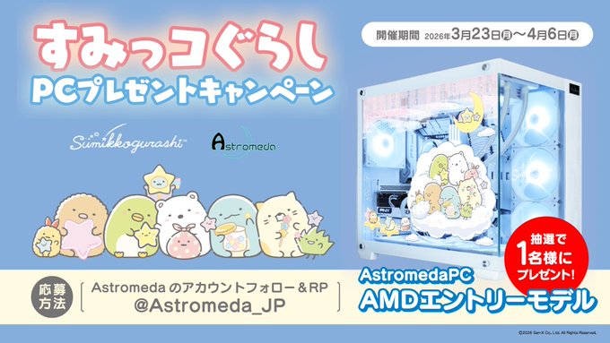 賞品:「すみっコぐらしオリジナルPC」AMDエントリーモデル(1名様)