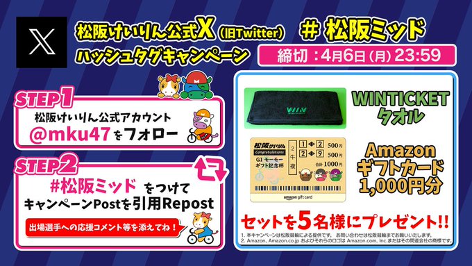賞品:WINTICKETオリジナルタオルとAmazonギフトカード1,000円分(5名様)