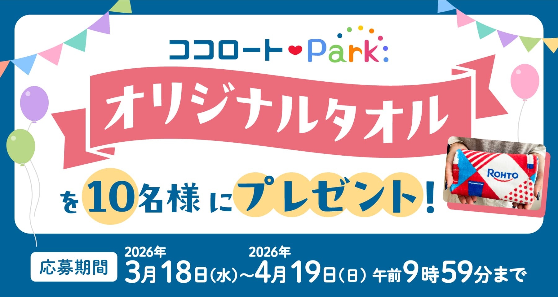 ココロートパークオリジナルタオルを10名様にプレゼント 2026.04.05ココロートパーク‐プレゼントキャンペーン 賞品:ココロートパークオリジナルタオル(10名様) 締切:2026年4月19⽇(日)9:59ご応募には会員登録/ログインが必要です。※詳細はキャンペーンページにてご確認ください。応募はこちらから