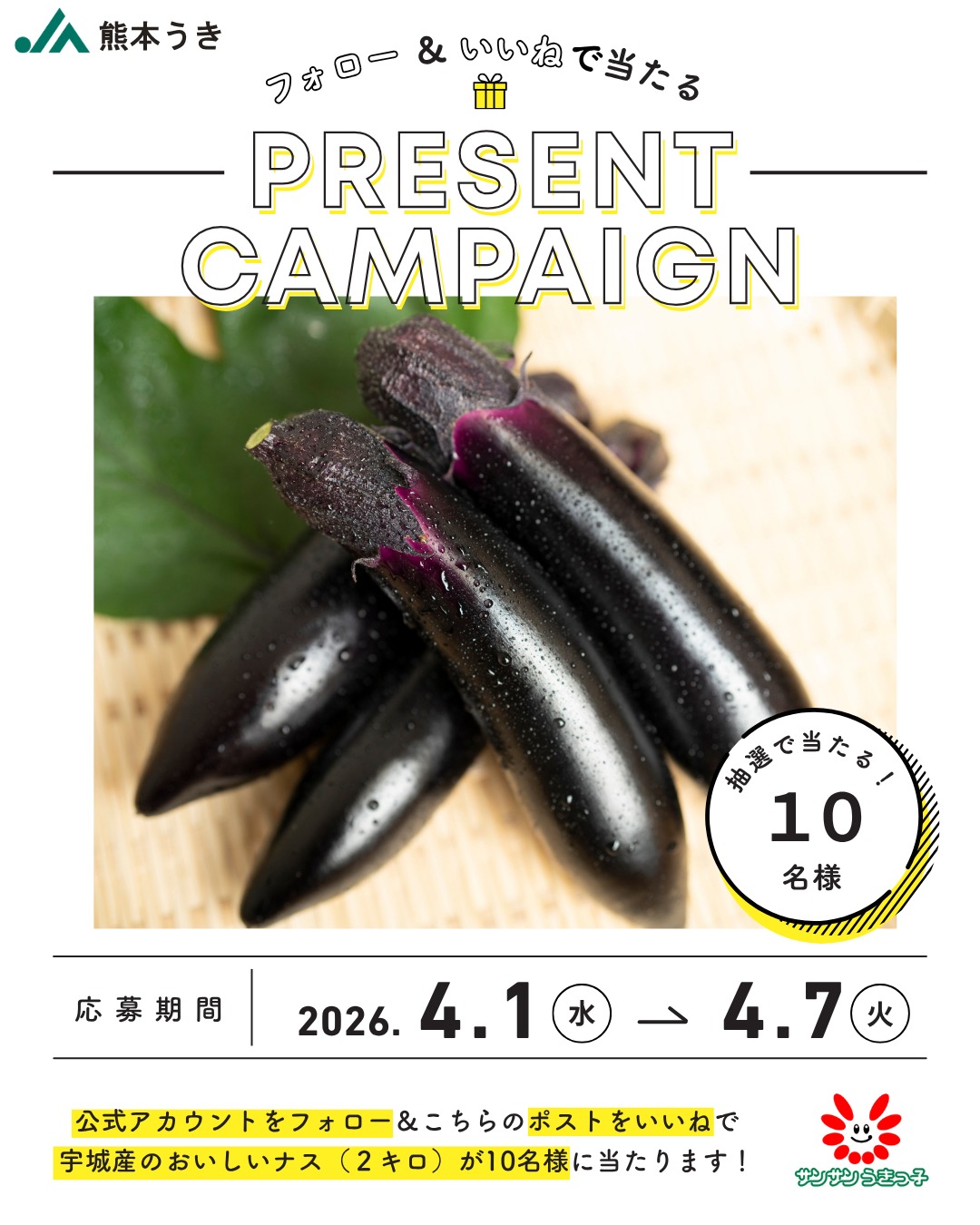 【Instagram懸賞】JA熊本うき 茄子2kgを10名様にプレゼント