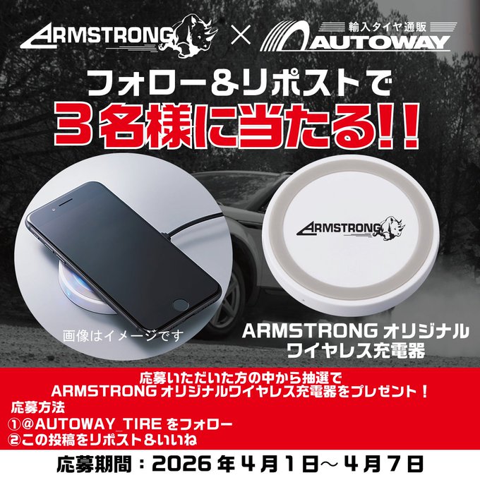 輸入タイヤ通販 AUTOWAY公式Xアカウントをフォロー&キャンペーン対象ポストをリポストして、記載されているURLからご応募ください。
