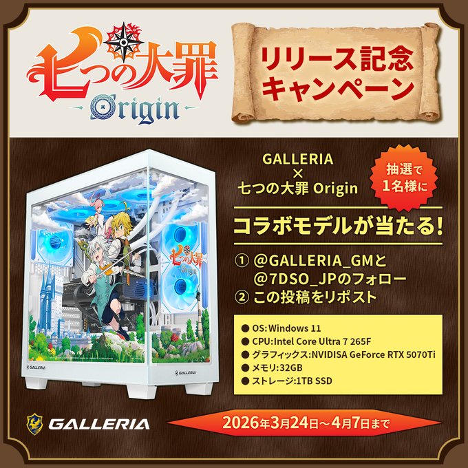@GALLERIA_GM @7DSO_JP をフォロー&キャンペーン対象ポストをリポストしてご応募ください。