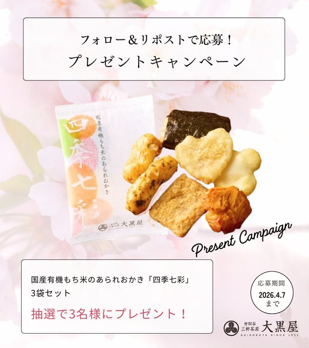 三軒茶屋おかきあられの大黒屋@創業105周年‐フォロー&リポストキャンペーン
