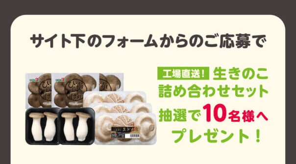 生きのこ詰め合わせセットを10名様にプレゼント 2026.04.05株式会社サンプロ‐プレゼントキャンペーン 賞品:工場直送!生きのこ詰め合わせセット(10名様) 締切:2026年4月30日(木)応募フォームより必要事項を入力してご応募ください。※詳細はキャンペーンページにてご確認ください。応募はこちらから