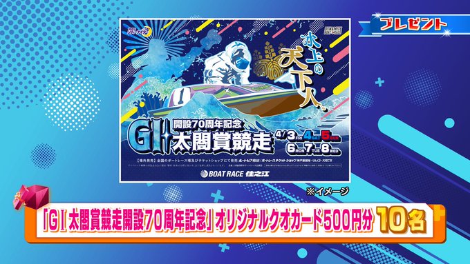 賞品:GⅠ太閤賞競走開設70周年記念オリジナルクオカード500円分(10名様)