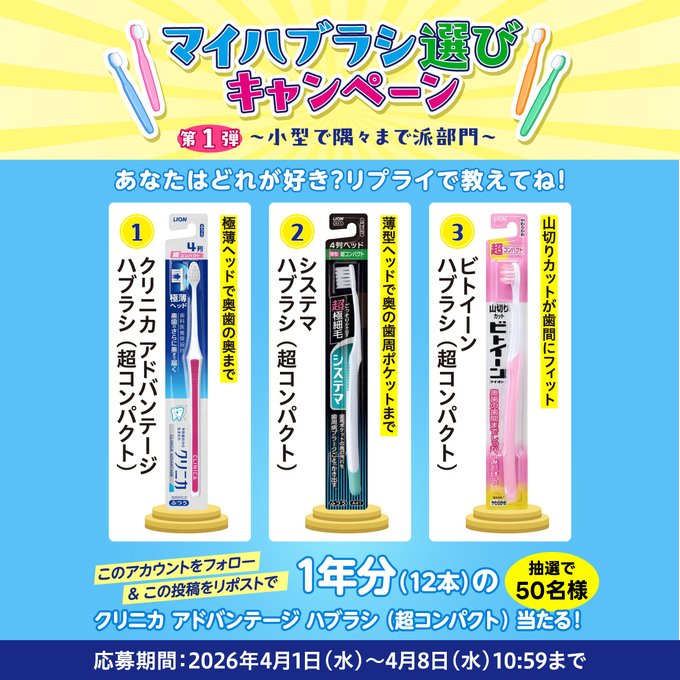 賞品:ハブラシ1年分(50名様)