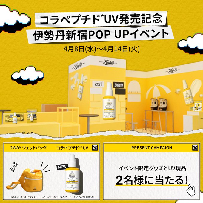 【X懸賞】イベント限定グッズとUV現品を2名様にプレゼント 2026.04.06キールズ‐コラペプチドUV発売記念 賞品:イベント限定グッズとUV現品(2名様) 締切:2026年4月8日(水)公式X(Twitter)アカウントをフォロー&キャンペーン対象ポストをリポストしてご応募ください。※詳細はキャンペーンページにてご確認ください。応募はこちらから