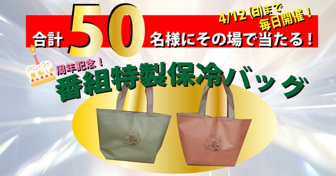 賞品:1周年記念番組特製保冷バッグ(50名様)