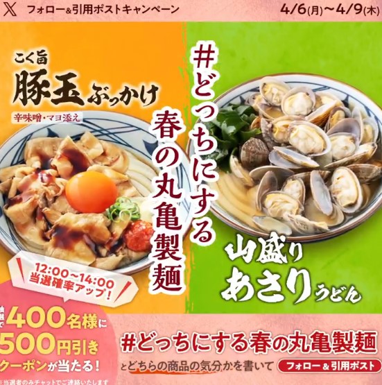 丸亀製麺‐#どっちにする春の丸亀製麺 フォロー&引用ポストキャンペーン