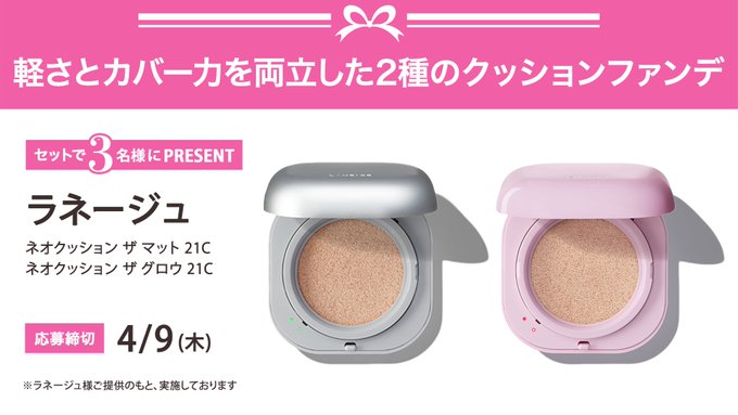賞品:ラネージュ ネオクッション ザ マット 21C&ネオクッション ザ グロウ 21C(3名様)