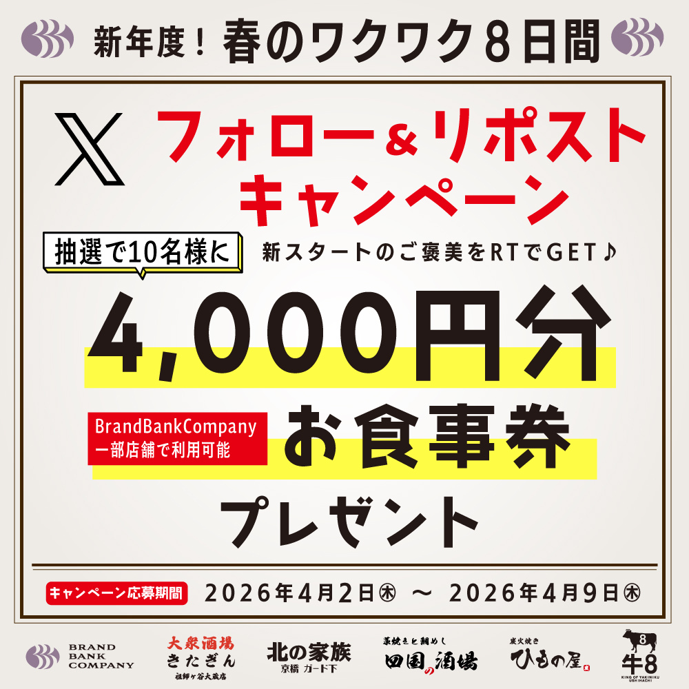 BRAND BANK COMPANY‐新年度!春のワクワク8日間 フォロー&リポストキャンペーン