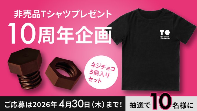 賞品:ネジチョコTシャツ(半袖)とネジチョコ5個入り(10名様)