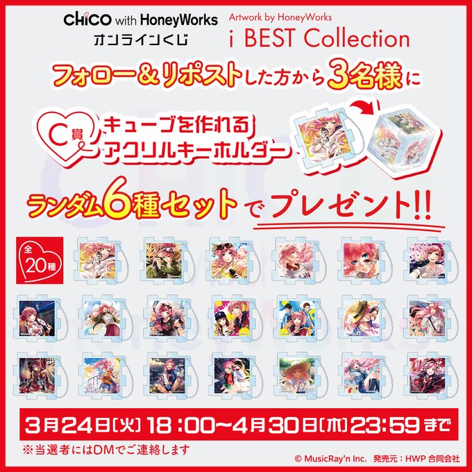 賞品:C賞「アクリルキーホルダー」をキューブが作れるランダム6種セット(3名様)