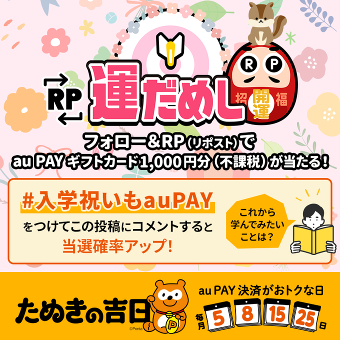 賞品:auPAY ギフトカード1,000円分(不課税)(100名様)
