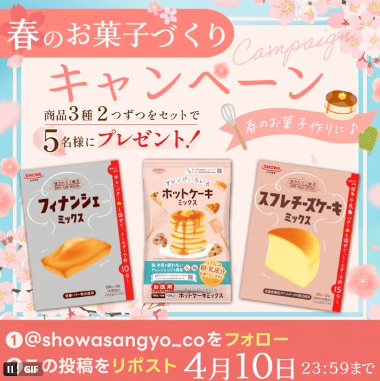 賞品:お菓子づくりに役立つ弊社商品3種2つずつ(5名様)