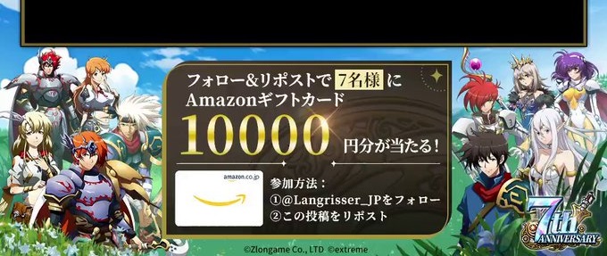 ラングリッサーモバイル‐7周年主題歌 Full ver.公開記念 Amazonギフト券リポストCP