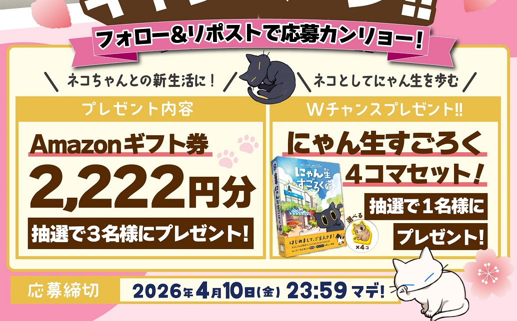 賞品:Amazonギフト券2,222円分、にゃん生すごろく(合計4名様)